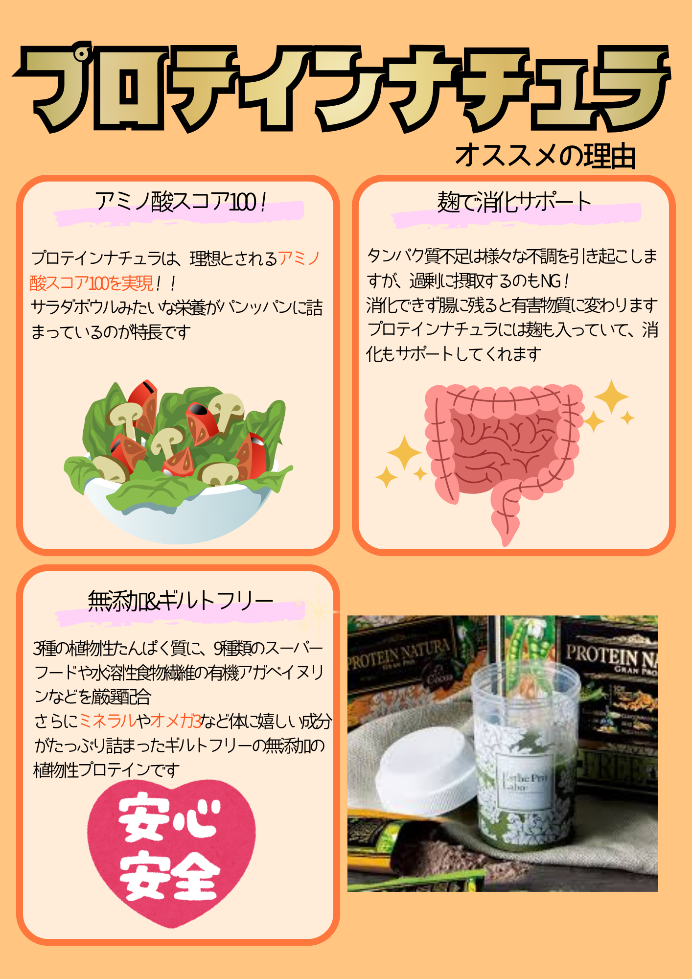 無添加でアミノ酸スコア100を実現した植物性のプロテイン「プロテインナチュラ」!(^^)!