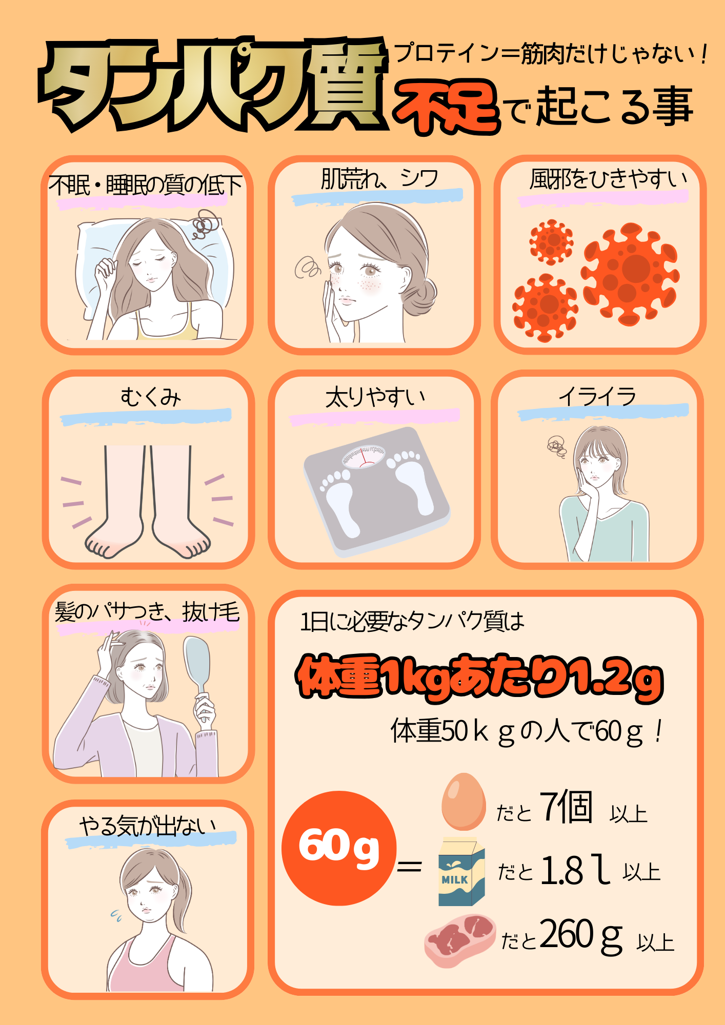 実はタンパク質不足は心身ともに様々な影響を及ぼすんです!!